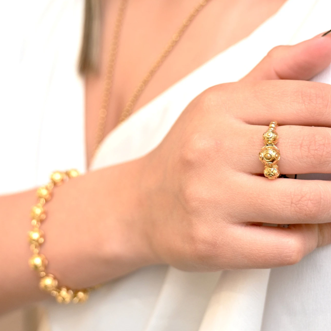Anel Bolas de Viana | Aço Inoxidável Dourado | Alma de Portugal