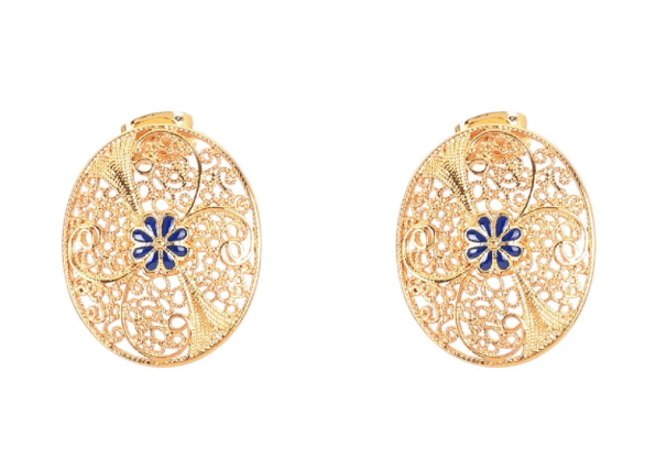 Brincos Tradicional e Flor em Aço Inoxidável Dourado - Fusão da Arte Portuguesa